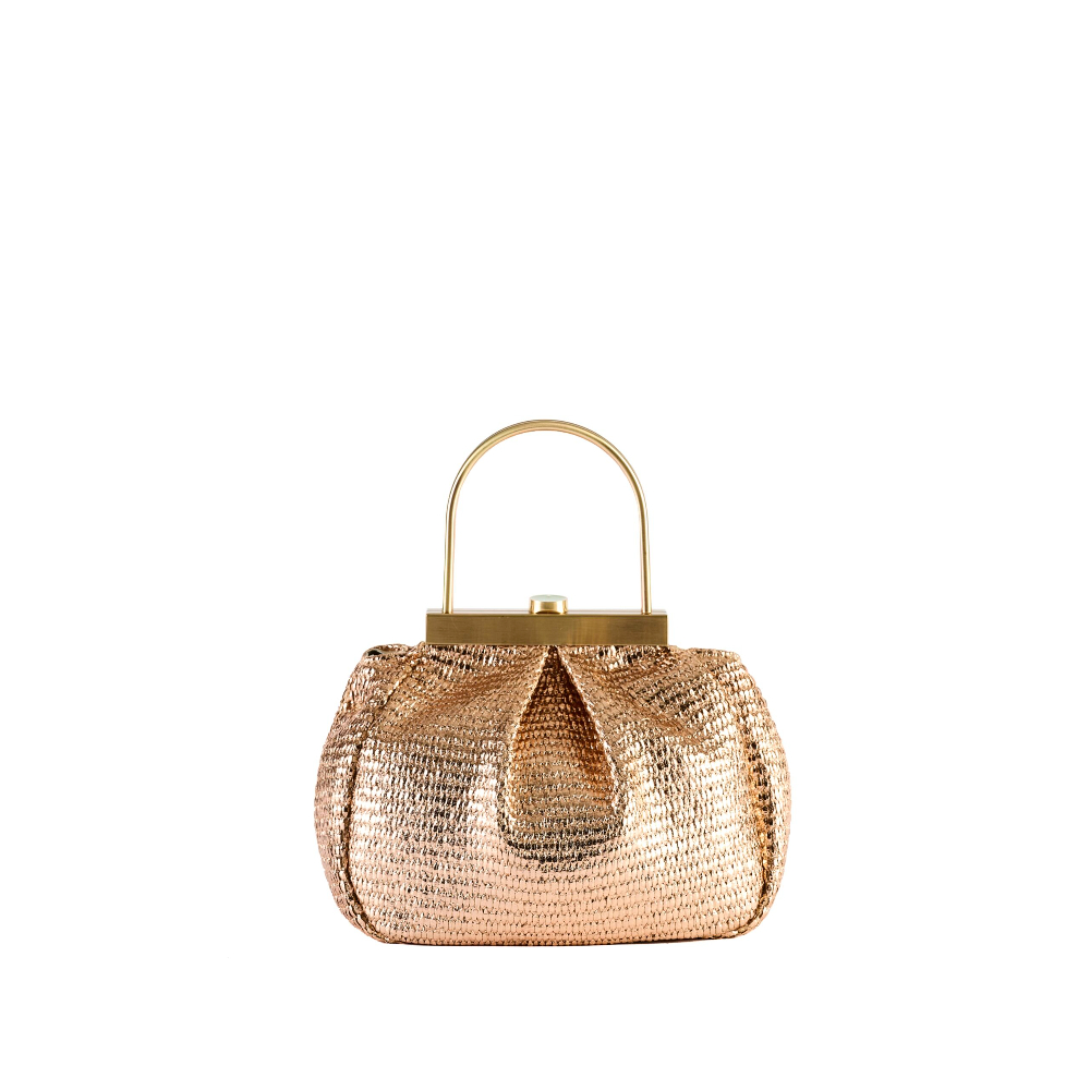 Bolso pequeño en rafia glitter con cierre a presión